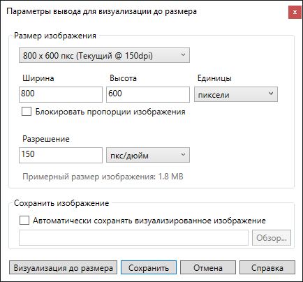 Указание формата и разрешения вывода визуализированного изображения при визуализации в окно визуализации.