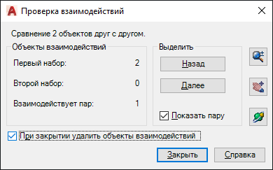 Диалоговое окно "Проверка пространственных взаимодействий"