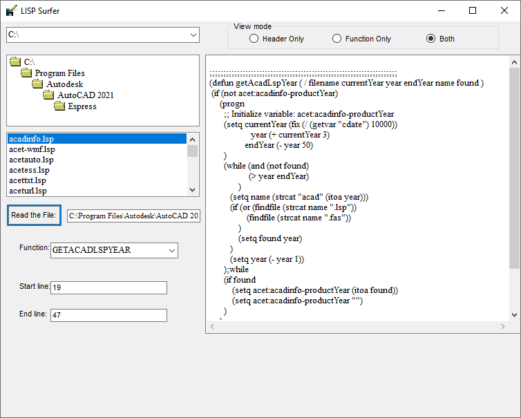 Отображение компонентов файла AutoLISP по отдельным функциям.