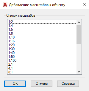 Вывод списка масштабов, которые можно добавить к выбранному аннотативному объекту.