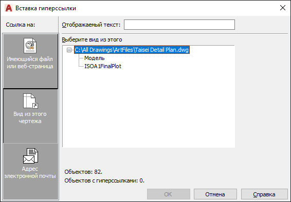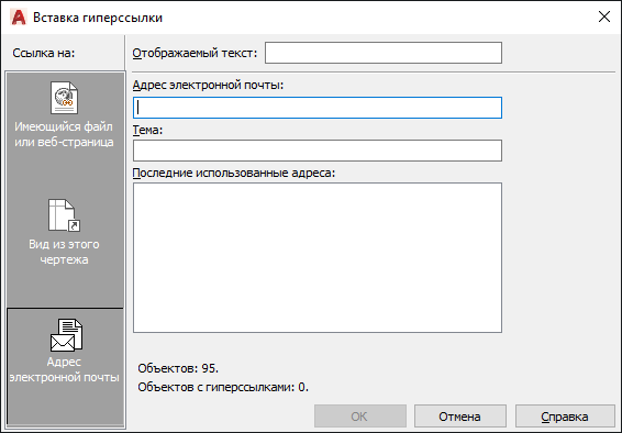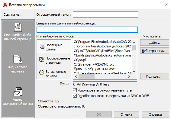 Вывод списка последних назначенных в чертеже гиперссылок.