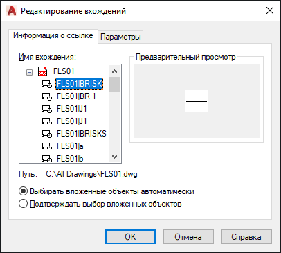 Если в списке присутствует несколько вхождений, необходимо выбрать из них внешнюю ссылку или блок для редактирования. Допускается одновременное редактирование только одного объекта.