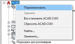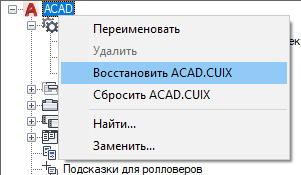 Прим.: Можно выполнить возврат к исходному состоянию только для файлов адаптации CUIx, находящихся в папке UserDataCache, вложенной в папку установки программы.