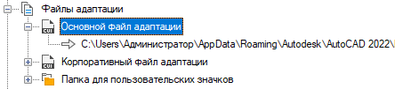 - В Проводнике перейдите к файлу <диск>:\Users\<имя пользователя>\AppData\Roaming\Autodesk\<название программы>\<номер версии>\<язык>\support\<имя файла адаптации>.cuix.