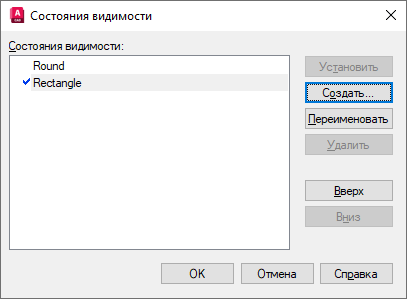 Нажмите «Создать», введите имя «Прямоугольный» и нажмите кнопку «ОК» в диалоговом окне «Новое состояние видимости», чтобы создать второе состояние.