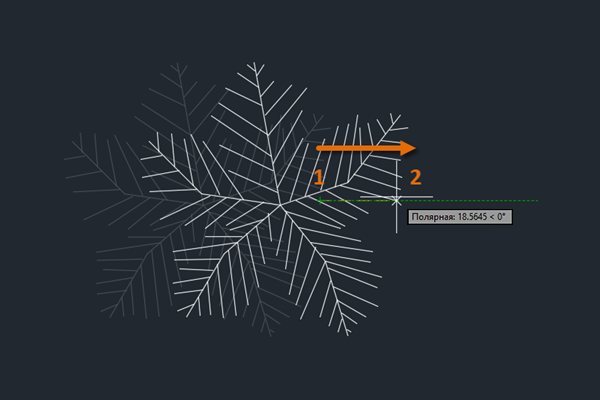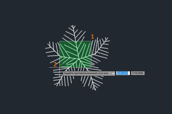 При появлении запроса Укажите базовую точку выберите опорную точку (1) и перетащите объекты в требуемое положение (2).