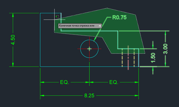 Прим.: Если требуется наложить зависимость на направление при растягивании, можно временно включить режим «Орто», нажав и удерживая клавишу SHIFT, или попробовать объединить объектные привязки (если применимо) с режимами «Орто» (F8), «Полярное отслеживание» (F10) и «Объектное отслеживание» (F11). Дополнительные сведения по этим темам см. в разделах по ссылкам, указанным в конце статьи.