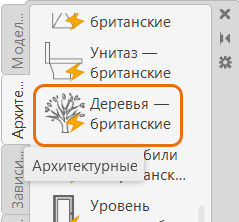 Выберите блок «Деревья — британские» на палитре и щелкните в любом месте области рисования, чтобы разместить блок.