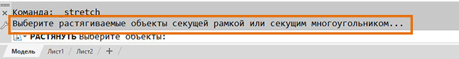 Для правильной работы команды РАСТЯНУТЬ объекты должны быть выбраны секущей рамкой или секущим многоугольником.