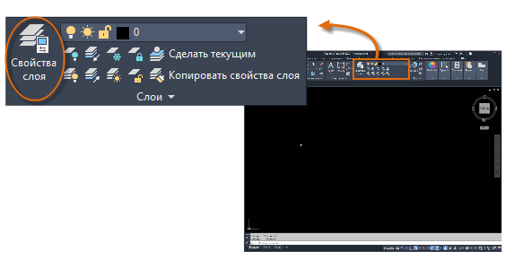 Для просмотра организации чертежа используется команда СЛОЙ, чтобы открыть "Диспетчер свойств слоев". Можно ввести СЛОЙ или СЛ в окне команд, либо щелкнуть инструмент "Свойства слоя" на ленте.