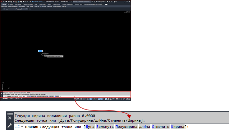 Скрыть или отобразить окно команд можно нажатием клавиш CTRL + 9 или с помощью ленты (вкладка «Вид» > панель «Палитры» > «Командная строка» найти). Если окно команд скрыто, команды можно будет вводить в поле динамического ввода. Однако некоторые команды и системные переменные возвращают значения в окно команд, поэтому может потребоваться повторно отобразить окно команд.