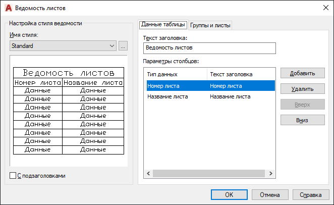 Если выбрана данная опция, ведомость листов разделяется на секции в соответствии с существующими группами листов.