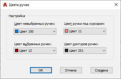 Управление цветом невыбранных ручек. (системная переменная GRIPCOLOR)