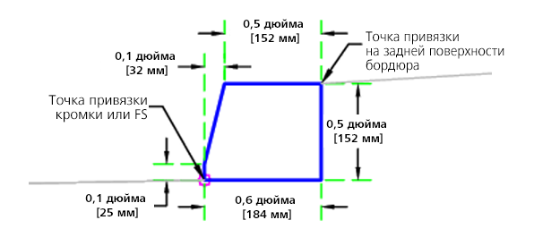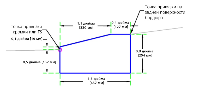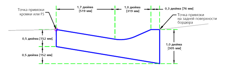 Элемент конструкции «БордюрыCaltrans» используется для вставки звеньев с целью создания бордюров и водосборных лотков на основе стандартного плана Caltrans RSP A87A.