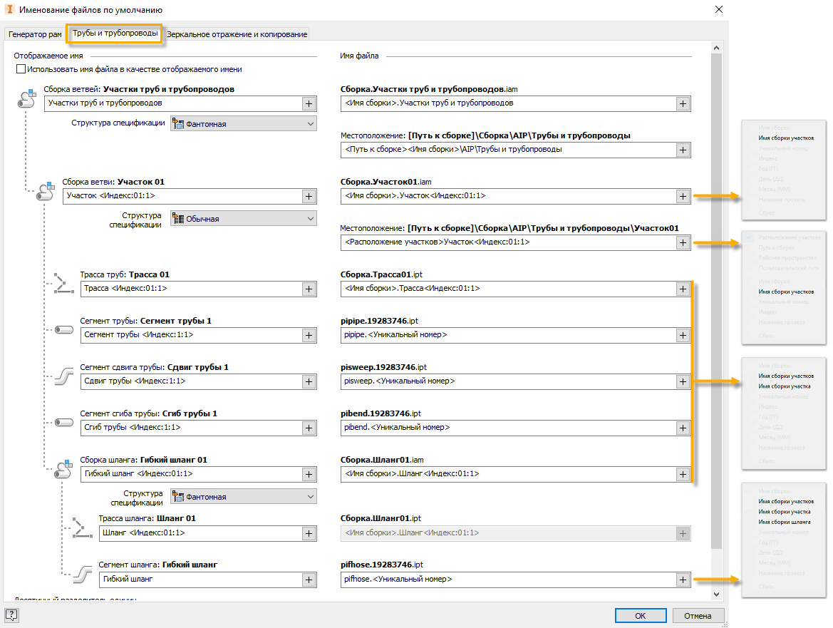 Дополнительные сведения см. в разделе Адаптация структуры папок труб и трубопроводов.
