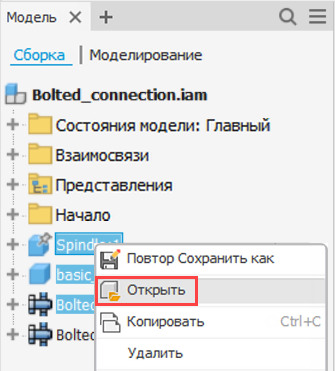 Теперь в обозревателе можно выбрать несколько компонентов и узлов, а также открыть набор объектов в новых сеансах Inventor. Щелкните набор объектов правой кнопкой мыши и выберите «Открыть».