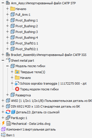Как и в сборках, в обозревателе среды чертежа есть значки, указывающие на прозрачность.