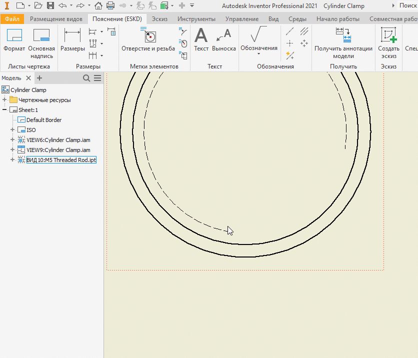 Теперь можно дважды щелкнуть размер внутренней или наружной резьбы, чтобы открыть текстовый редактор в файле чертежа.