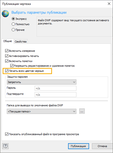 Теперь можно включить параметр «Все цвета черным» при экспорте 2D-чертежа в файл DWF, чтобы избежать проблем с определенными цветами.
