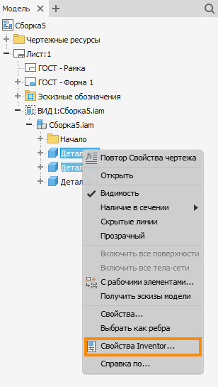 Команда «Свойства Inventor» теперь доступна при выборе нескольких элементов в обозревателе.