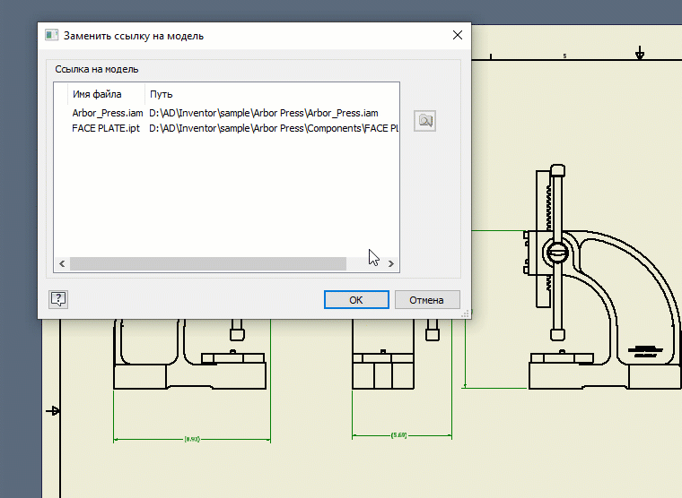 Теперь можно изменить размер диалогового окна «Заменить ссылку на модель». Благодаря этому модель можно не прокручивать по горизонтали и вертикали для просмотра информации.