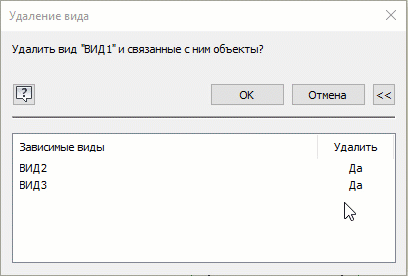 При удалении вида с зависимыми видами в диалоговом окне «Удалить вид» теперь по умолчанию отображаются зависимые виды. Это позволяет легко указать зависимые виды, которые требуется сохранить или удалить. По умолчанию для всех зависимых видов устанавливается значение «Да» для параметра удаления. Чтобы изменить настройки, нажмите «Удалить». Ранее нужно было нажать кнопку развертывания