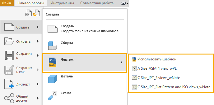 Прямой доступ к шаблонам формата листа при создании файла чертежа.