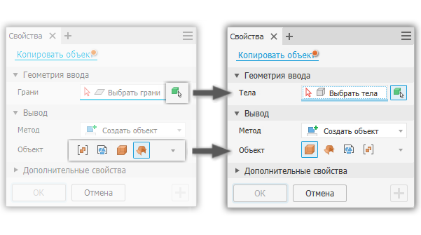 Дополнительные сведения о команде «Копировать объект» см. в разделе Копирование объектов между деталями, сборками и средами конструирования.