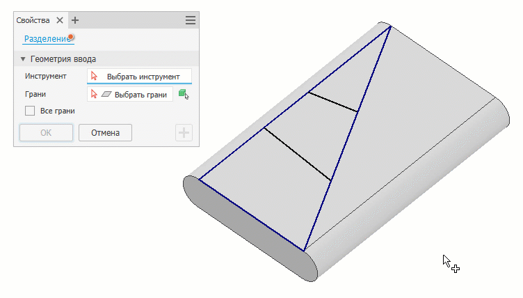 Дополнительные сведения о команде «Разделить» см. в разделе Объединение или разделение тел и граней.