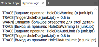 В журнале iLogic используются функции iLogic для отправки соответствующих сообщений на панель журнала iLogic.