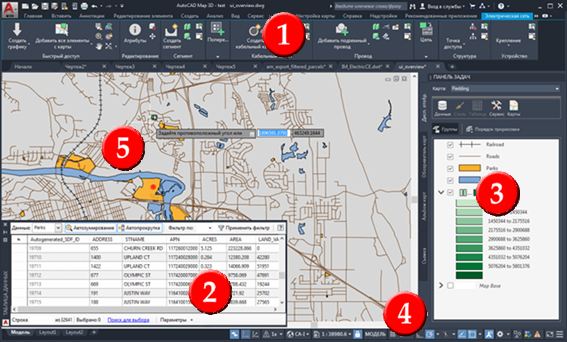 Основные элементы окна приложения Инструментарий AutoCAD Map 3D