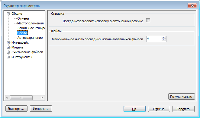 3. На странице "Среда" в поле "Максимальное число последних использовавшихся файлов" укажите количество последних документов, которое следует показывать в списке.