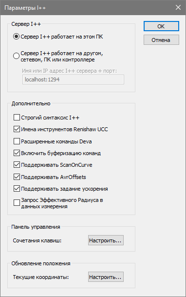 - В области Дополнительно выберите параметры для запущенного сервера I++ и нажмите ОК.