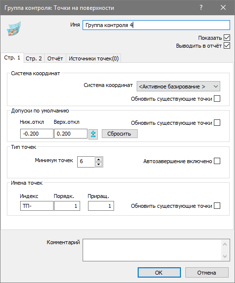 Используйте диалоговое окно Группа контроля: точки на поверхности для ввода информации о группе произвольных точек на поверхности.