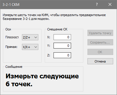 Прим.: Метод измерения 3-2-1 доступен только при создании измерений для станков с ЧПУ и ручным управлением.