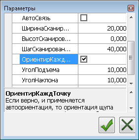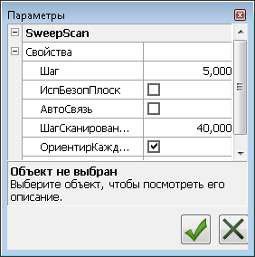 SweepScanStrip — генерирует синусоидальную кривую, вдоль которой сканирует щуп. Точки задают направляющую кривую. Вам нужно задать значения ШиринаСканированияПоверхности, ВысотаСканированияПоверхности, ШагСканированияПоверхности, УголПодъема и УголНаклона в диалоговом окне Параметры. Например:
