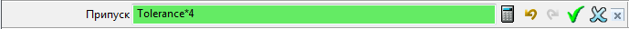 , чтобы принять выражение. Значение выражения отображается в поле Припуск, при этом синяя рамка указывает на то, что поле содержит сохраненное значение: