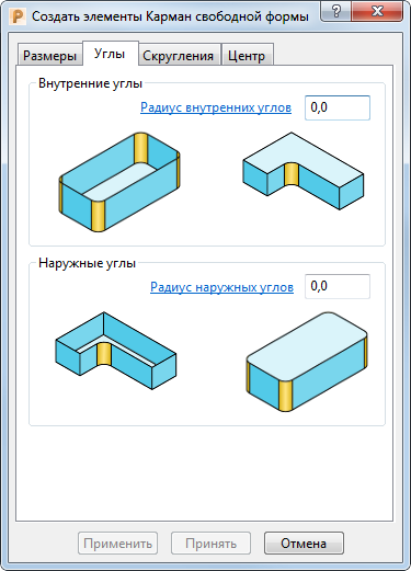 Радиус внутренних углов — Введите значение, чтобы задать радиус скругления для внутренних углов элемента.