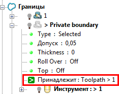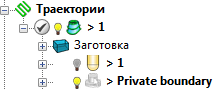 По умолчанию все границы создаются как частные границы. Частная граница использует допуск, припуск и инструмент связанной с ней траектории. Частная граница контролирует все остальные свойства (такие как ограничения, проверка столкновений и заготовка).