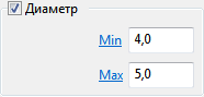 - Выберите параметр Диаметр и выберите Min — 4.0 и Max — 5,0.