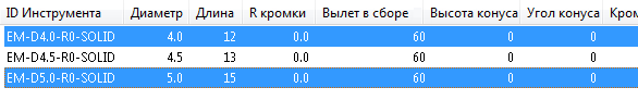 - Введите интересующие вас критерии поиска. Например, чтобы перечислить все концевые фрезы с диаметром от 4 мм до 5 мм: