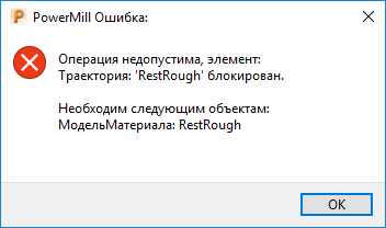 Нельзя удалить заблокированные объекты. При попытке такого удаления PowerMill выводит сообщение об ошибке: