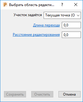 Диалог Выбрать область редактирования позволяет задавать область траектории, которую нужно отредактировать.