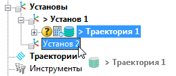 Чтобы добавить активную траекторию в активный установ, перейдите на вкладку «Траектория» > панель «Добавить в» > «Установ».