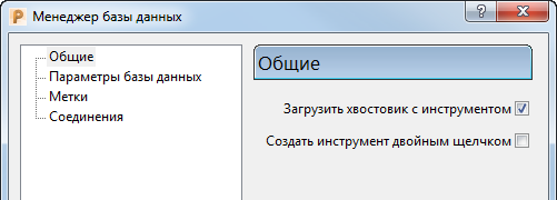 на вкладке «Инструмент» > панель «База данных», чтобы открыть диалоговое окно Менеджер базы инструментов.