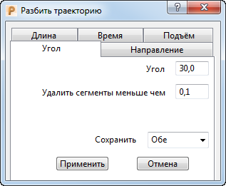 На вкладке Угол диалога Разбить траекторию:
