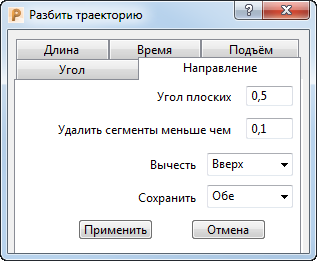 В диалоговом окне «Разбить траекторию» > «Направление»: