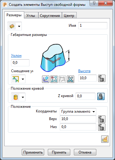Z кривая — Введите значение, чтобы задать высоту профильной кривой вдоль оси Z. Если вы задали угол Уклона, он применяется смещением кривой от этой высоты.