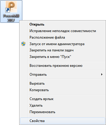 2. Щелкните ярлык PowerMill правой кнопкой мыши и выберите PowerMillСвойства.