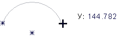 - Задайте начальную точку дуги (она задает радиус дуги). Изображение курсора изменится на дугу.